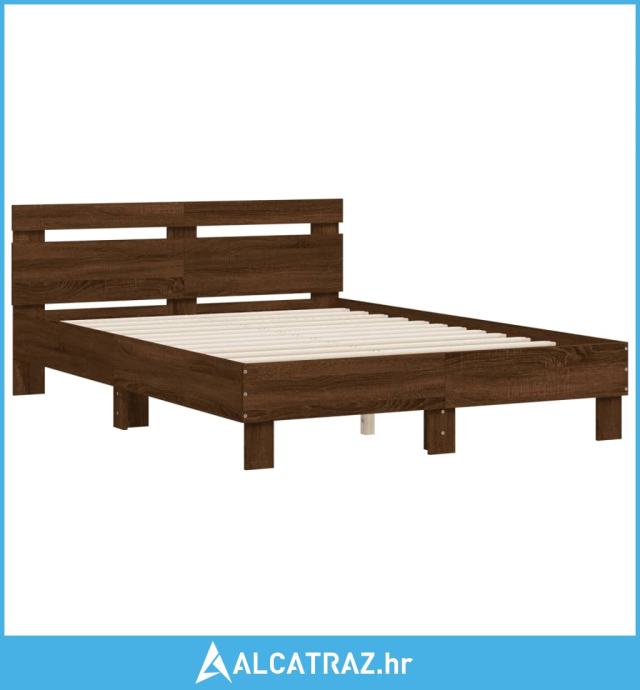 Okvir za krevet s uzglavljem boja hrasta 135x190 cm drveni - NOVO