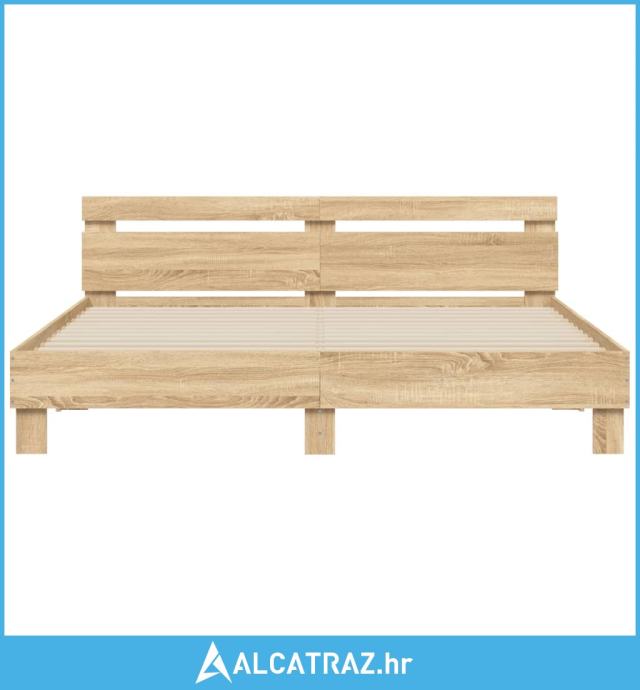 Okvir za krevet s uzglavljem boja hrasta 200x200 cm drveni - NOVO