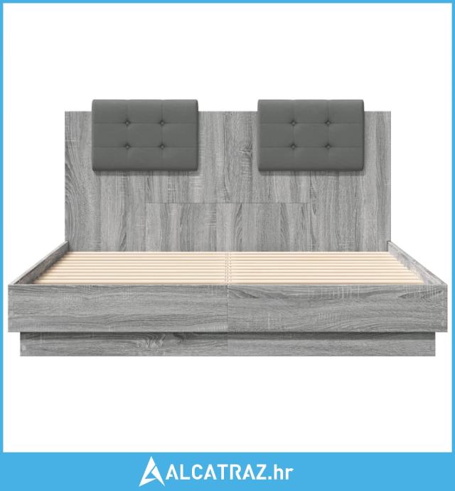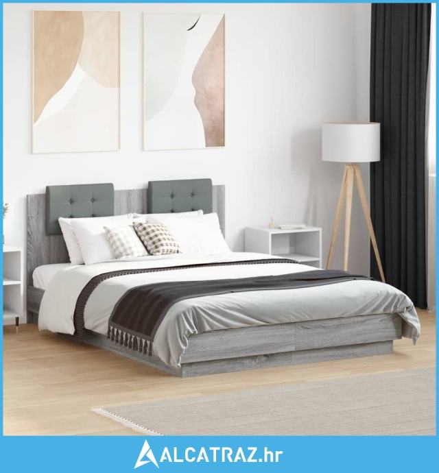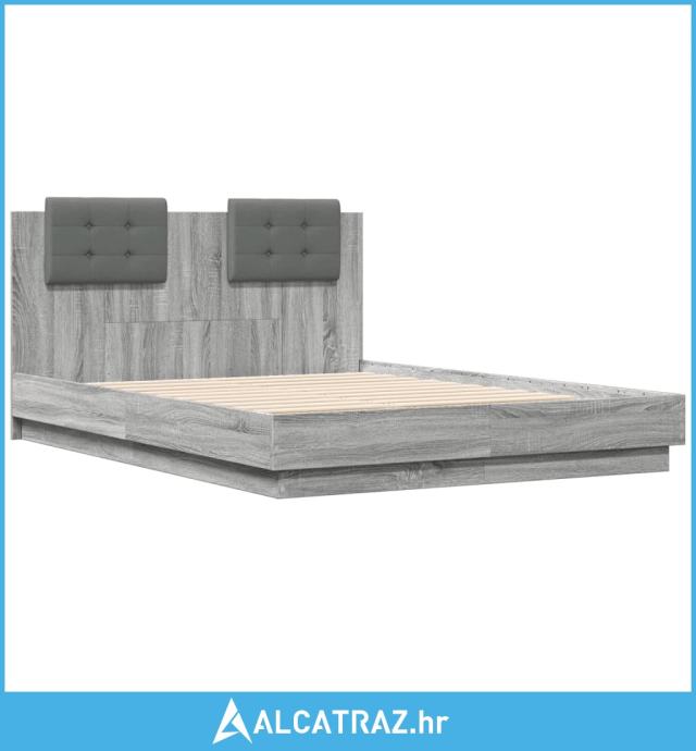 Okvir za krevet s uzglavljem boja sivog hrasta 120x190cm drveni - NOVO