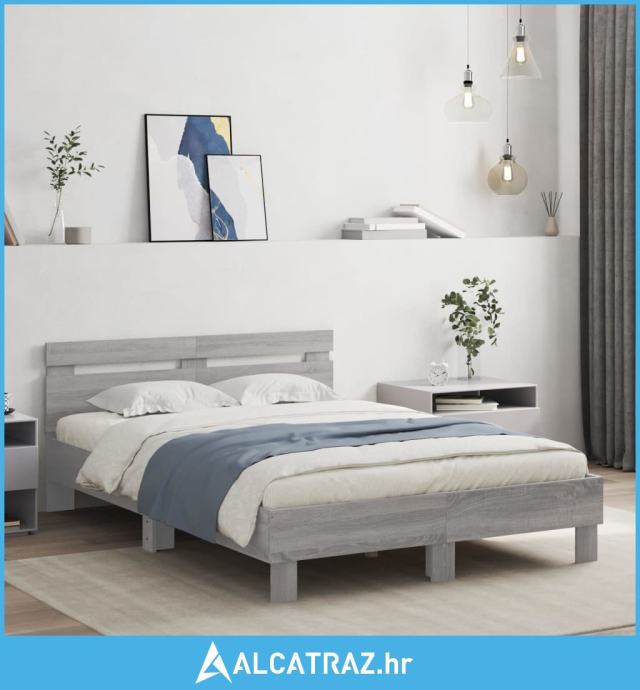 Okvir za krevet s uzglavljem boja sivog hrasta 135x190 cm - NOVO