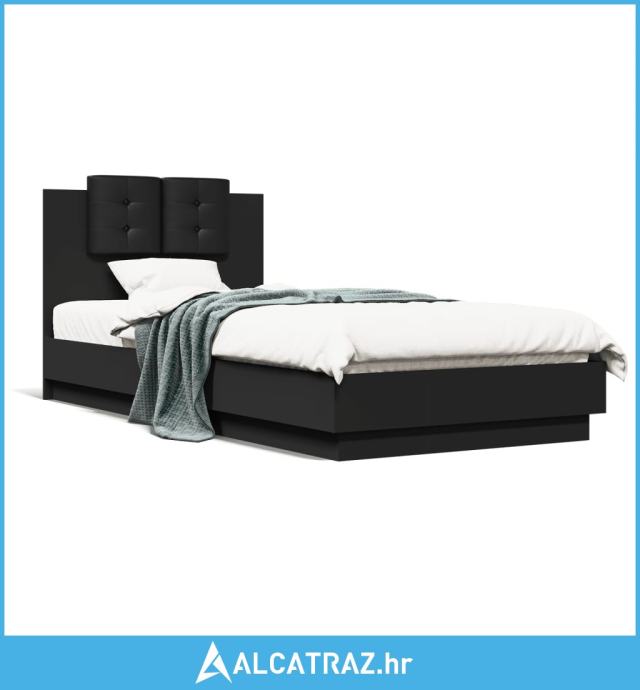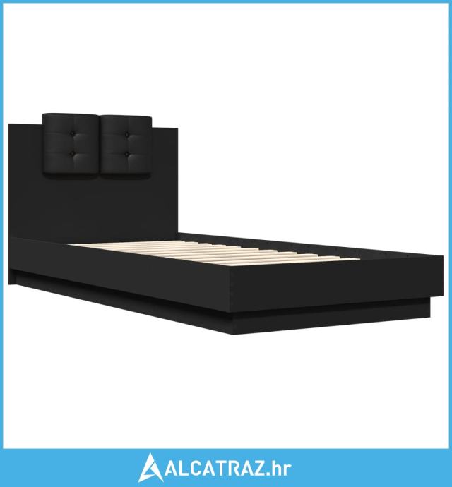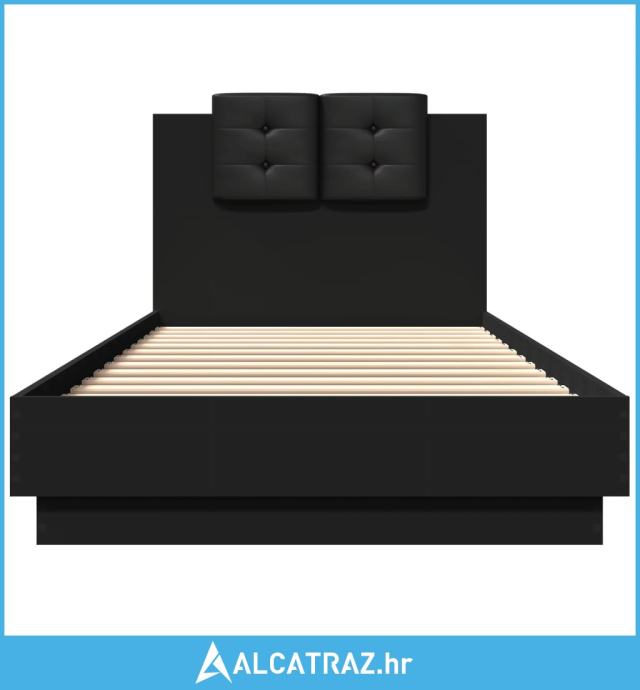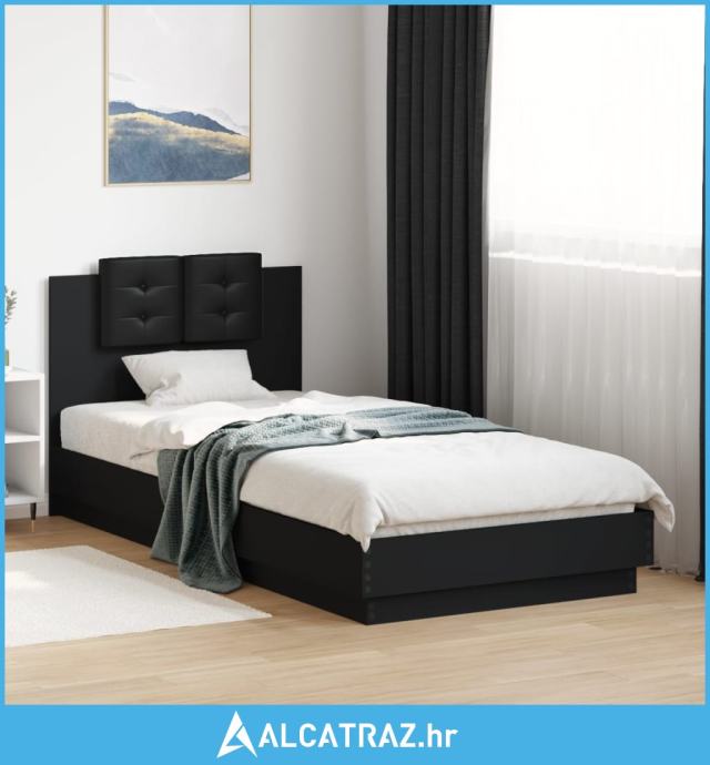 Okvir za krevet s uzglavljem crna 100x200 cm konstruiranog drva - NOVO