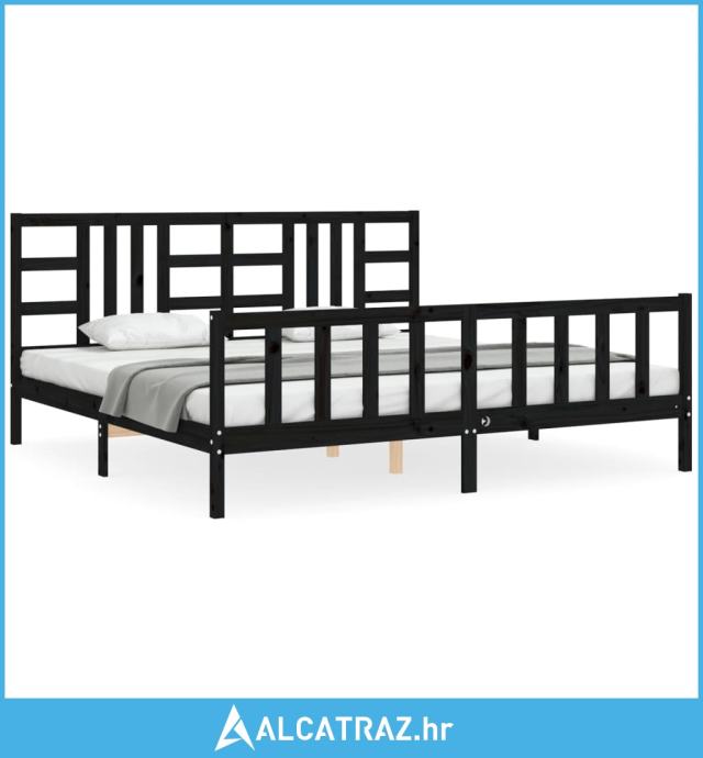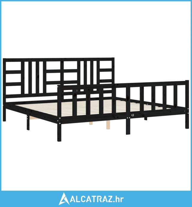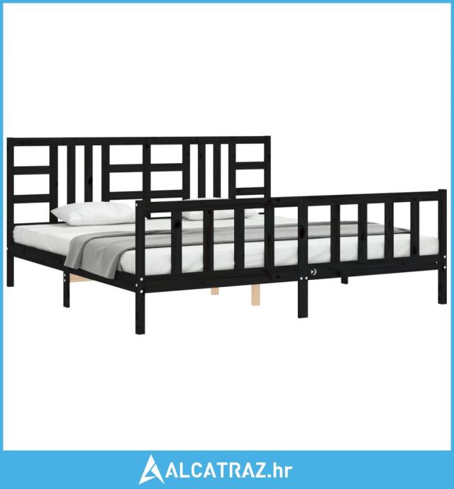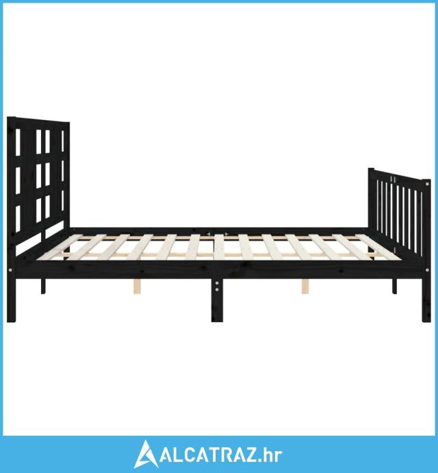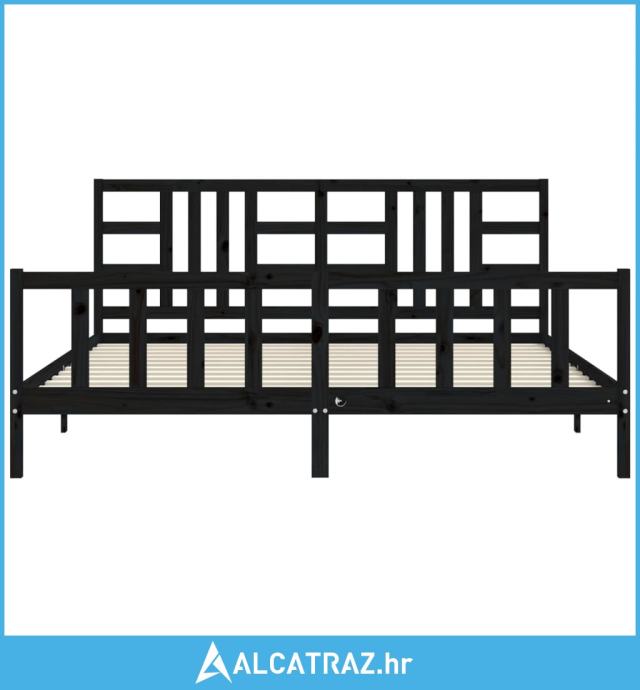 Okvir za krevet s uzglavljem crni 200 x 200 cm od masivnog drva - NOVO