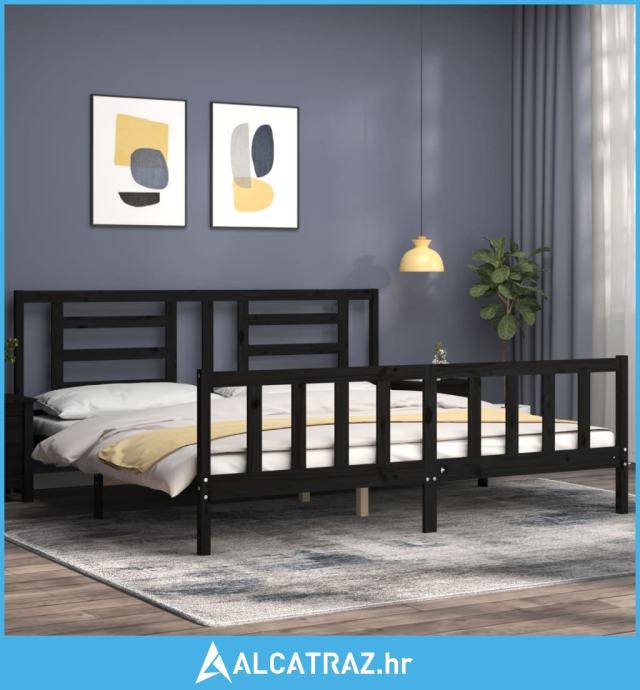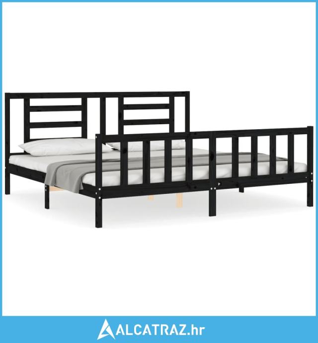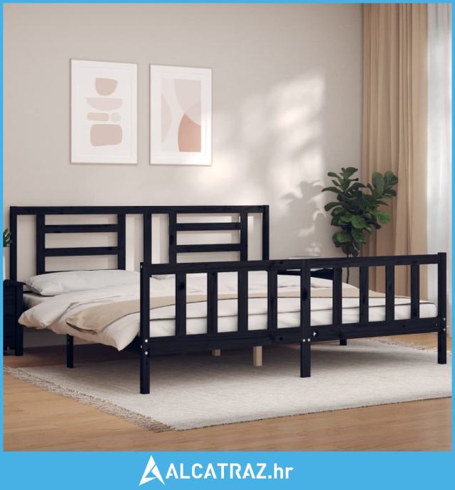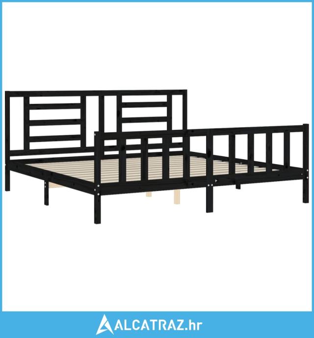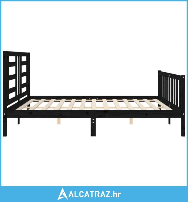 Okvir za krevet s uzglavljem crni 200 x 200 cm od masivnog drva - NOVO