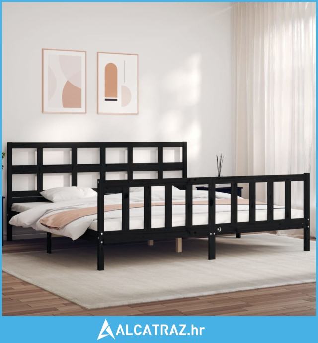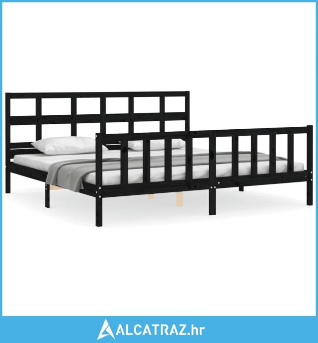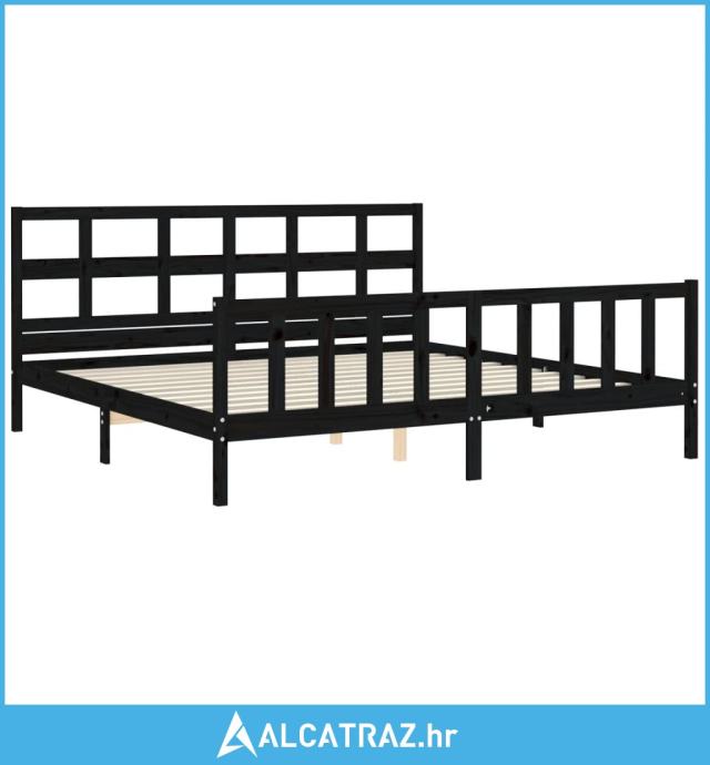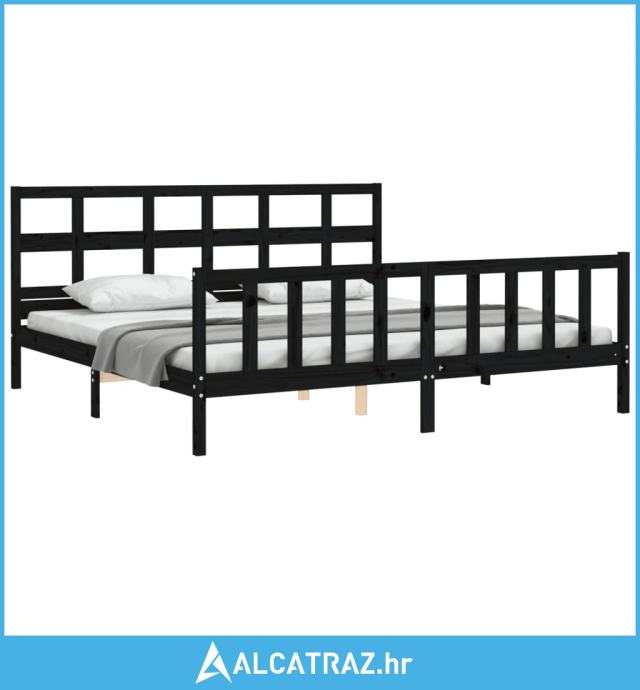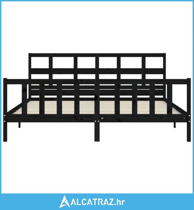 Okvir za krevet s uzglavljem crni 200 x 200 cm od masivnog drva - NOVO