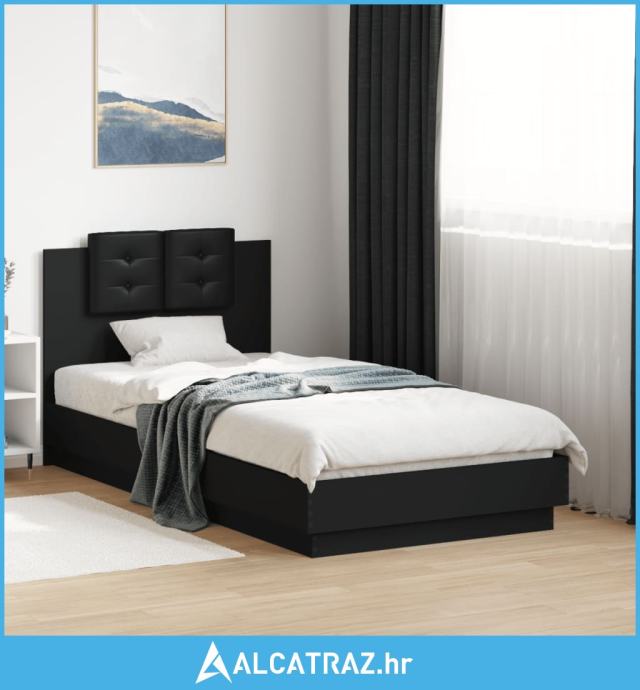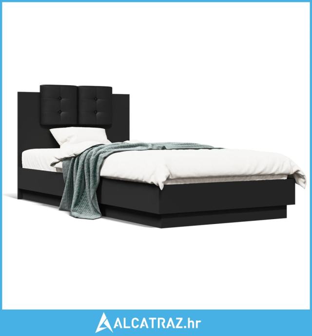 Okvir za krevet s uzglavljem crni 75x190 cm konstruirano drvo - NOVO
