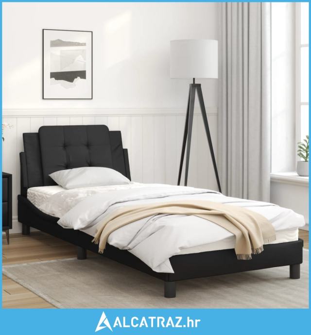 Okvir za krevet s uzglavljem crni 90x190 cm od umjetne kože - NOVO