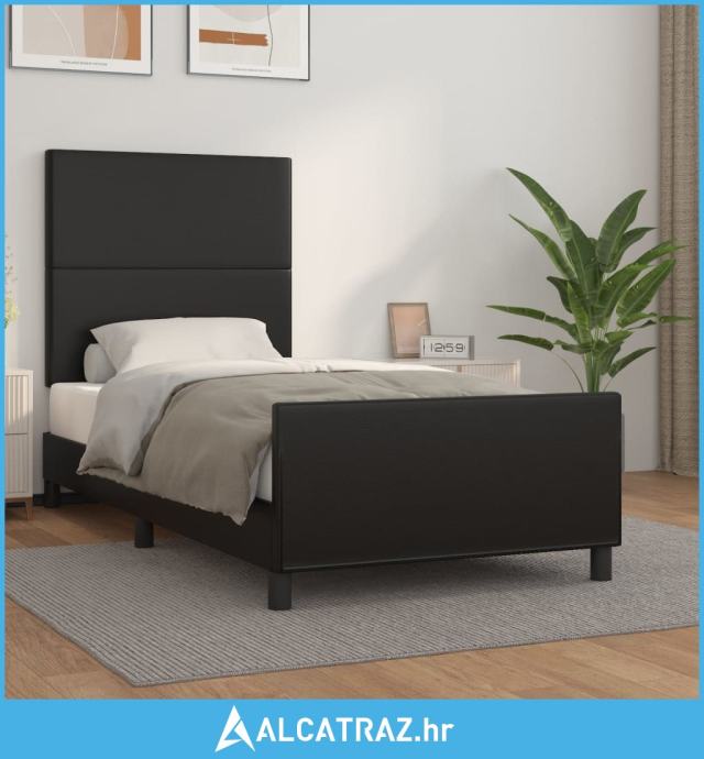 Okvir za krevet s uzglavljem crni 90x200 cm od umjetne kože - NOVO