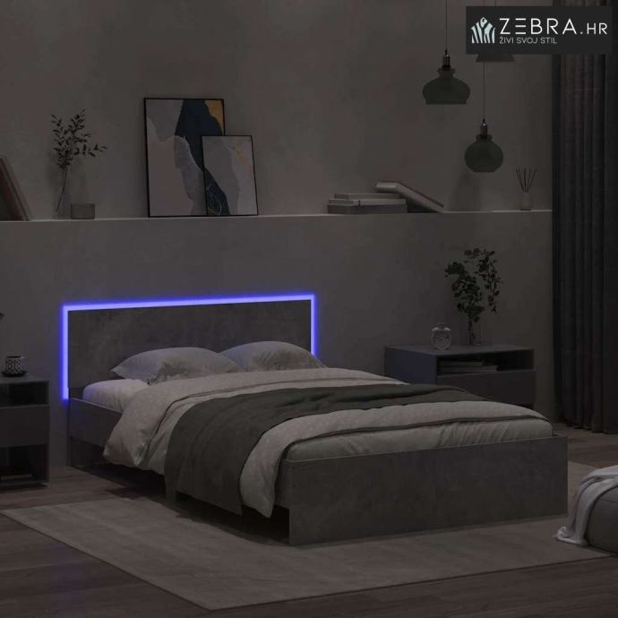 Okvir za krevet s uzglavljem i LED siva boja betona 120x200 cm - Beton