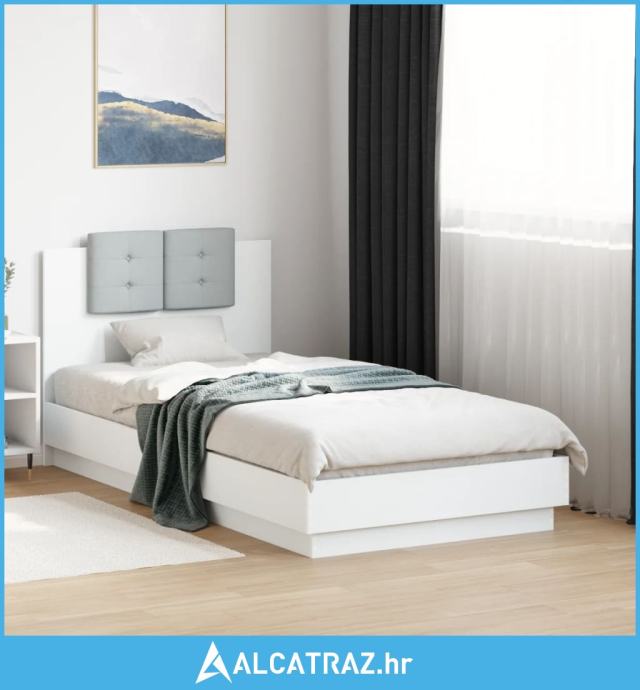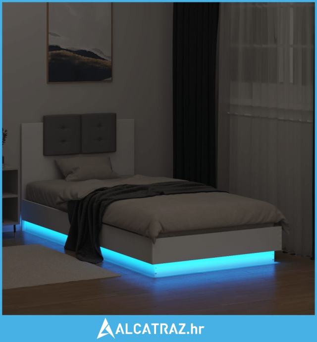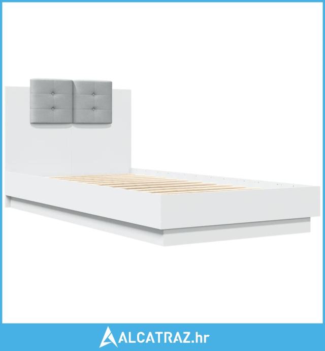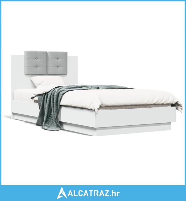 Okvir za krevet s uzglavljem i LED svjetlima bijeli 75x190 cm - NOVO