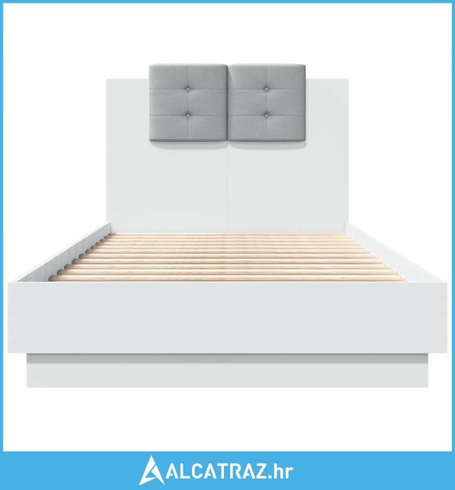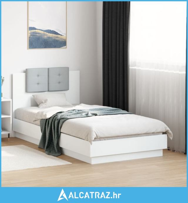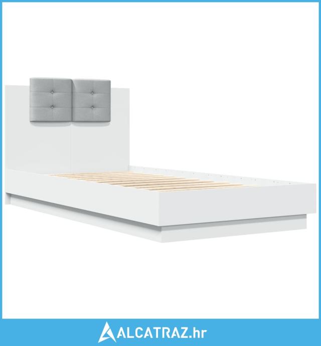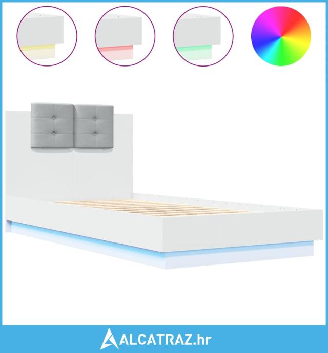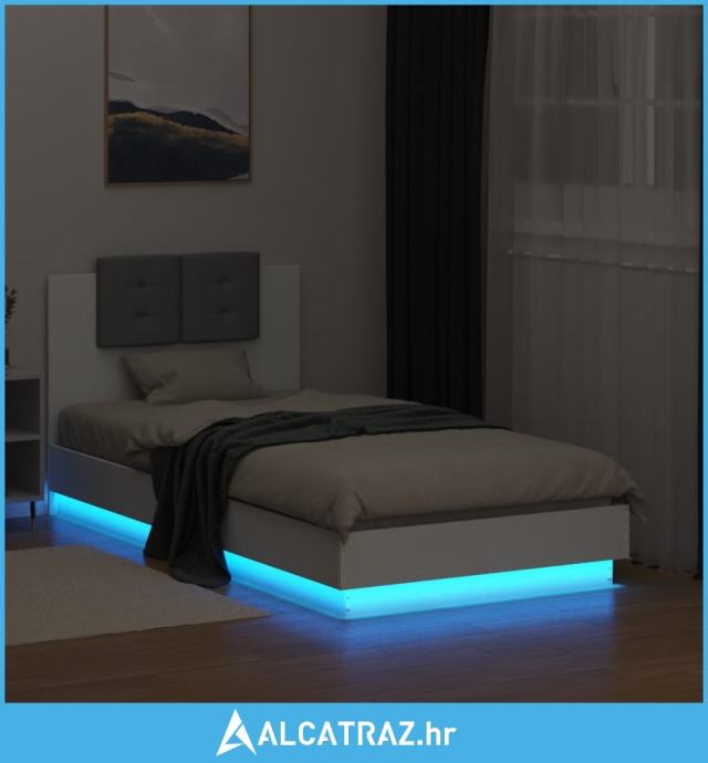 Okvir za krevet s uzglavljem i LED svjetlima bijeli 90x190 cm - NOVO