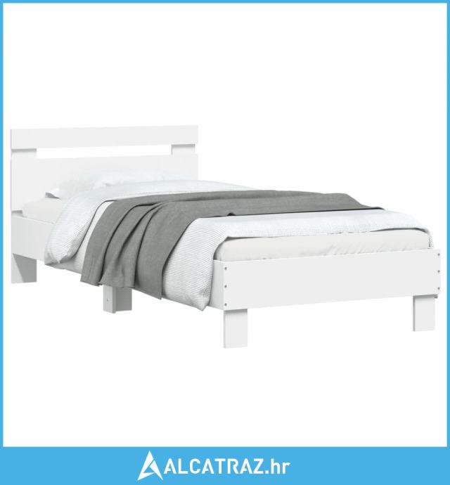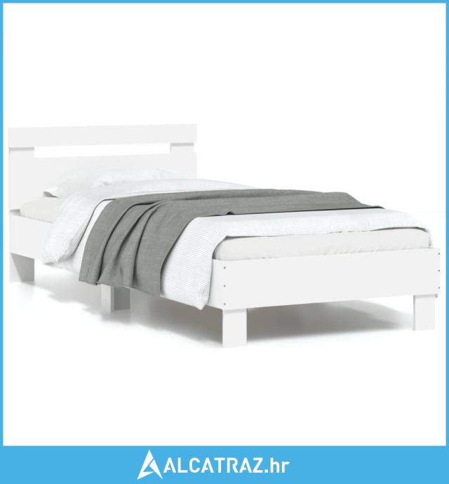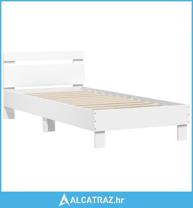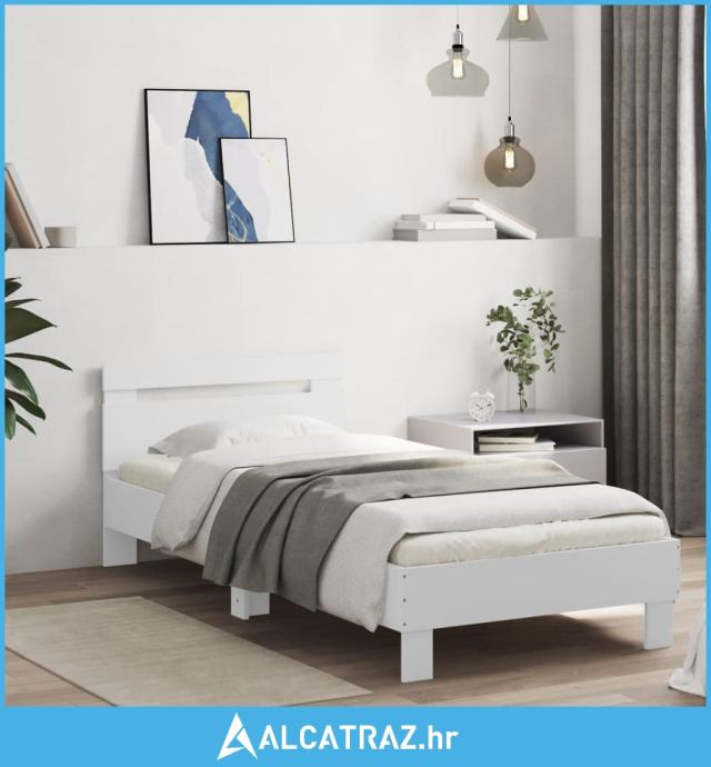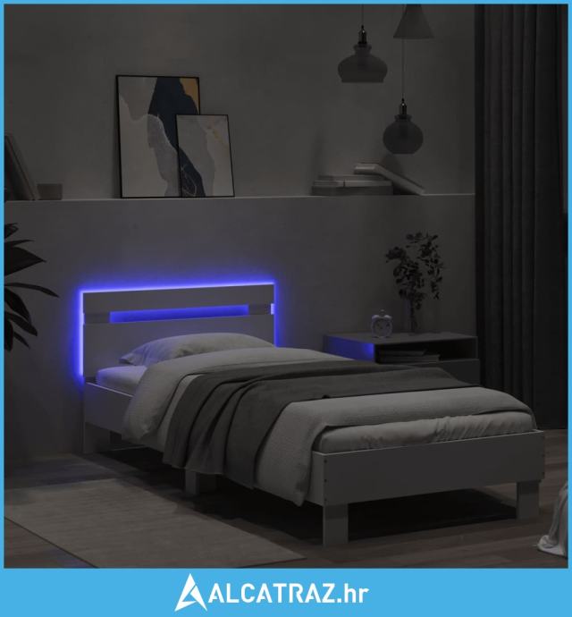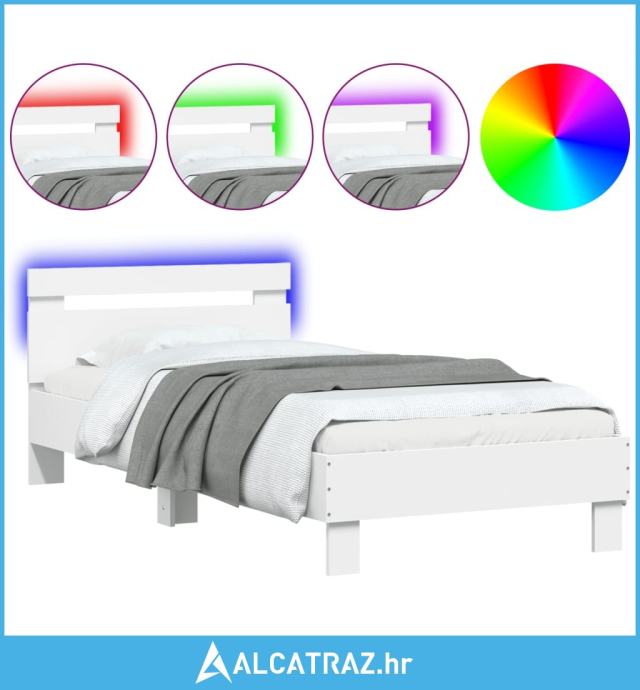 Okvir za krevet s uzglavljem i LED svjetlima bijeli 90x190 cm - NOVO