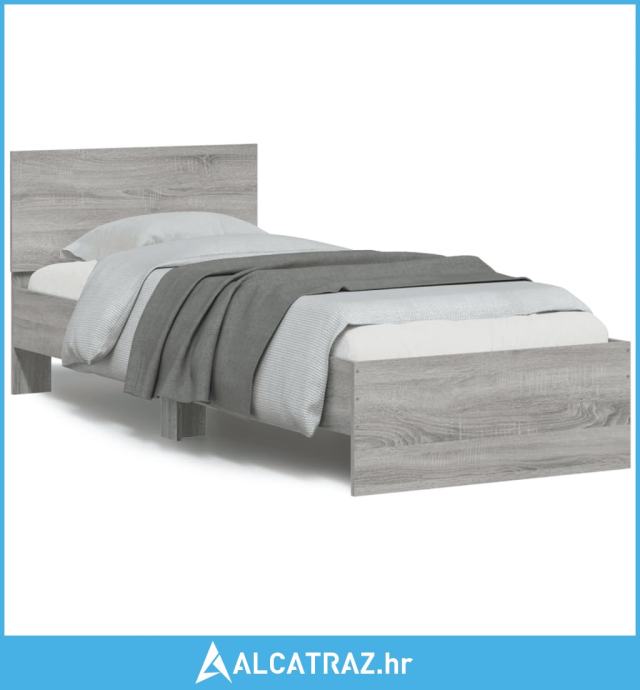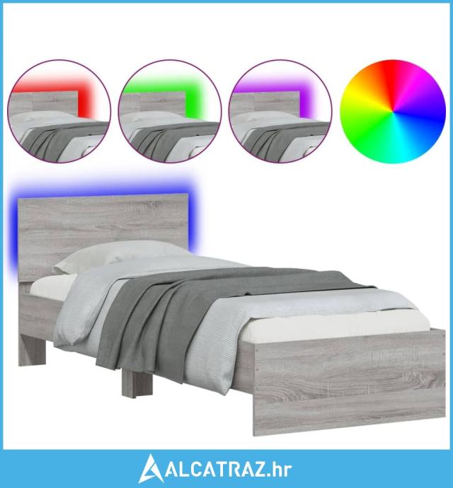 Okvir za krevet s uzglavljem i LED svjetlima boja sivog hrasta - NOVO