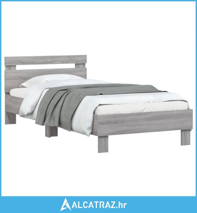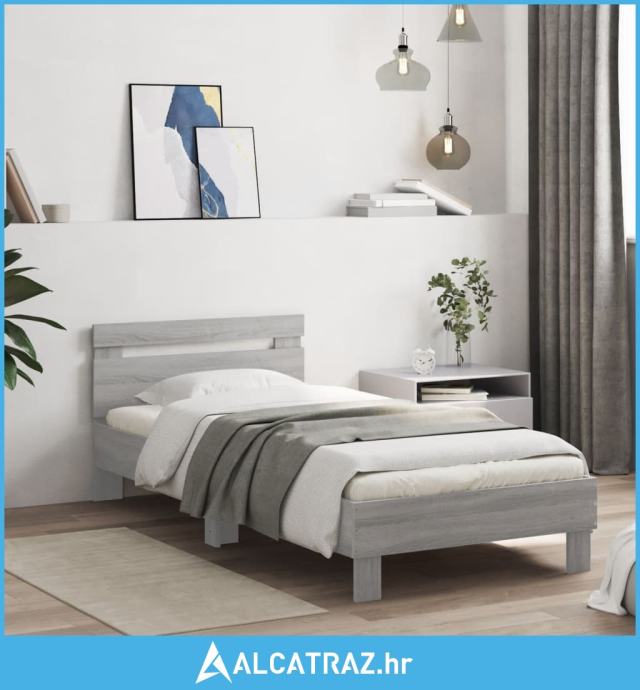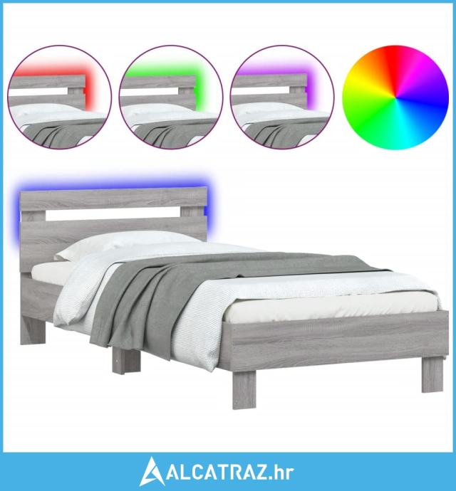Okvir za krevet s uzglavljem i LED svjetlima boja sivog hrasta - NOVO