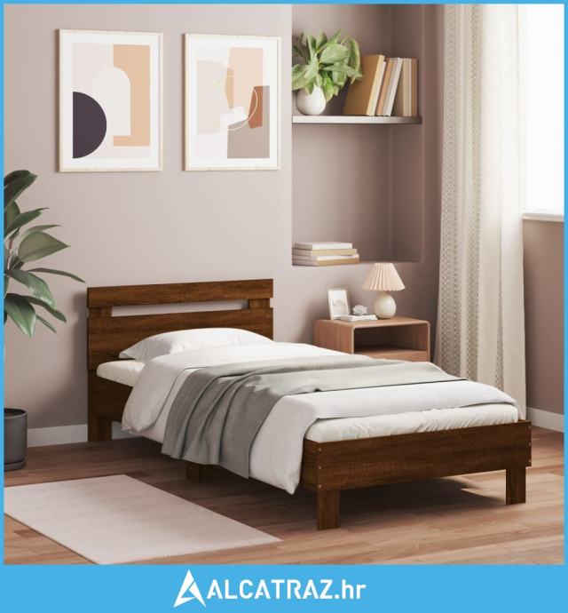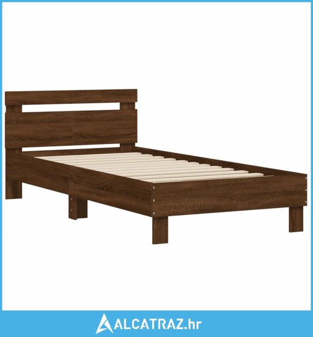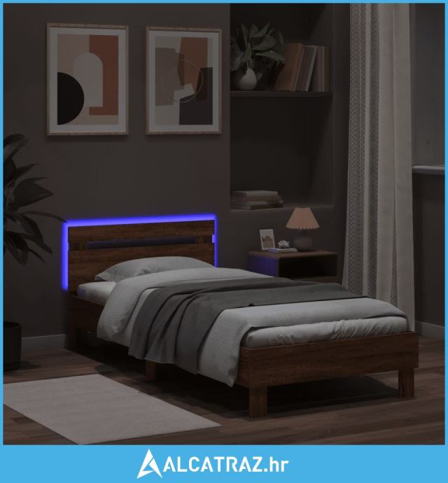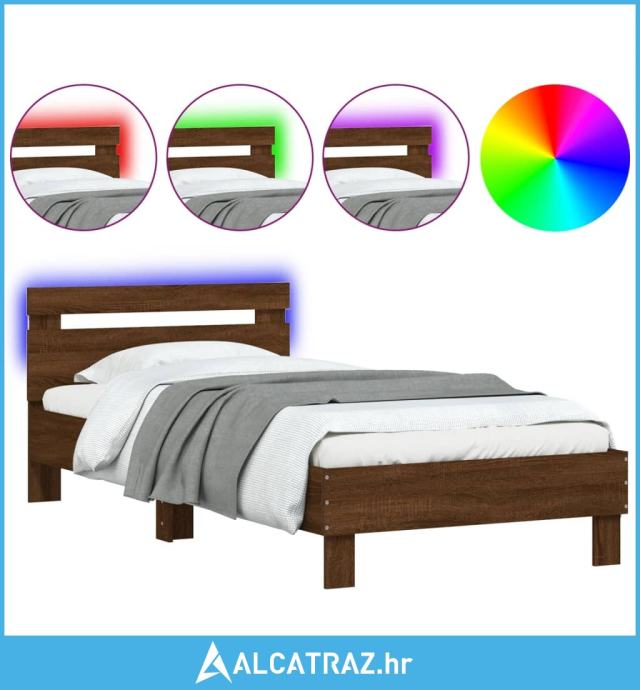 Okvir za krevet s uzglavljem i LED svjetlima boja smeđeg hrasta - NOVO
