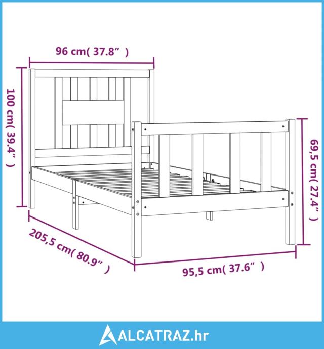 - Dimenzije okvira kreveta: 205,5 x 95,5 x 69,5 cm (D x Š x V)