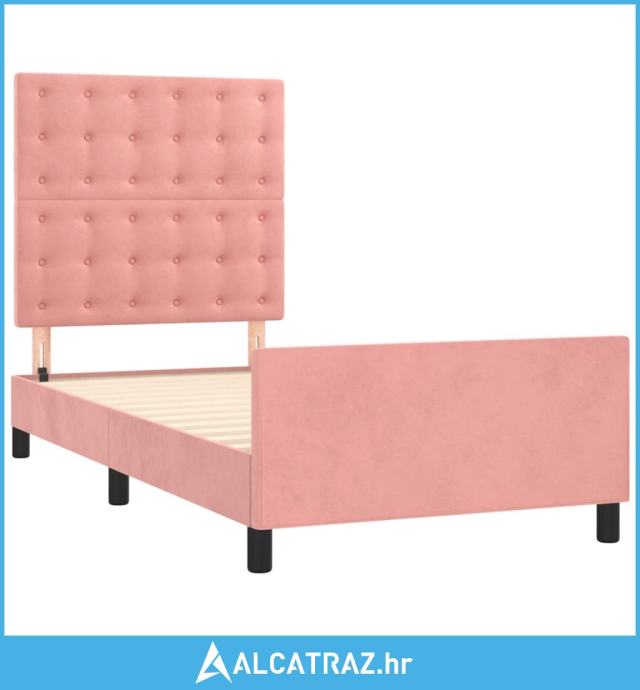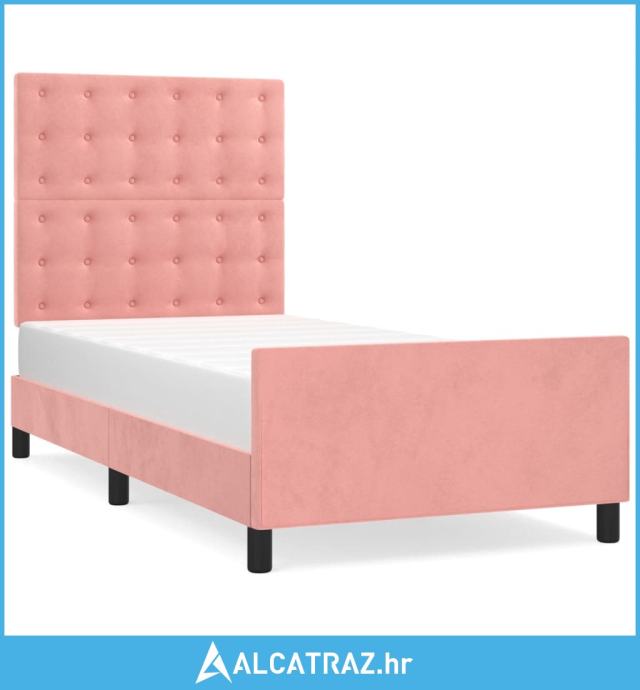 Okvir za krevet s uzglavljem ružičasti 100x200 cm baršunasti - NOVO