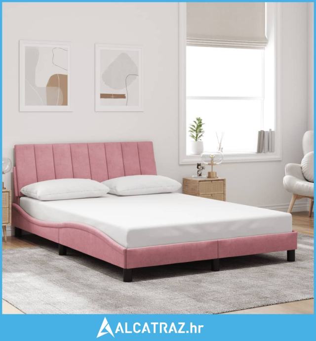 Okvir za krevet s uzglavljem ružičasti 140x190 cm baršunasti - NOVO