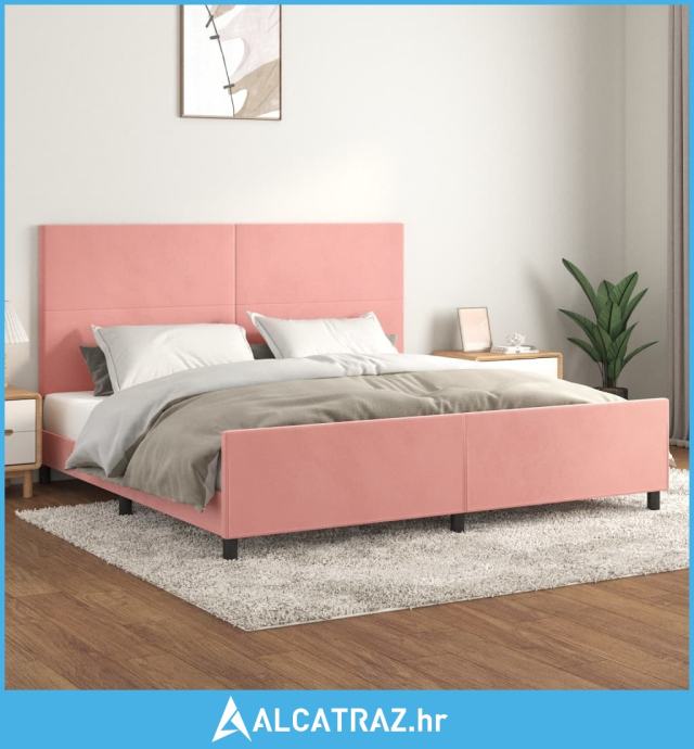 Okvir za krevet s uzglavljem ružičasti 200x200 cm baršunasti - NOVO