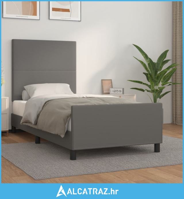 Okvir za krevet s uzglavljem sivi 100x200 cm od umjetne kože - NOVO