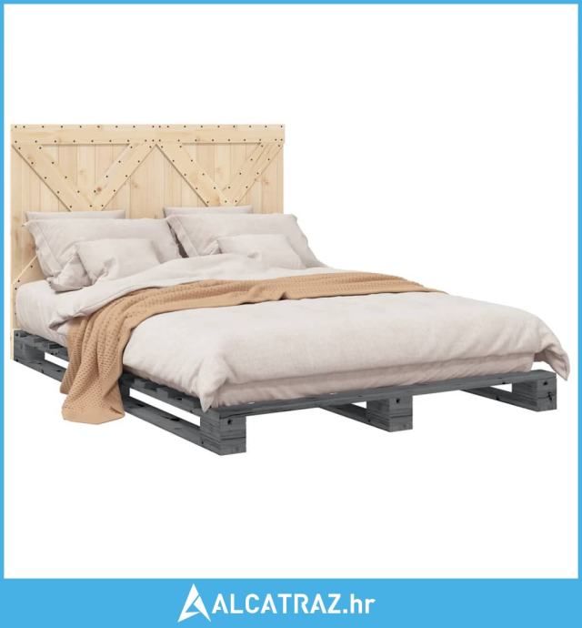 Okvir za krevet s uzglavljem sivi 160x200cm od masivne borovine - NOVO