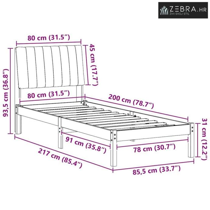 Platformni letvičasti okvir: Čvrsta podrška za bilo koju vrstu madraca, usko raspoređene letvice održavaju madrac u savršenom obliku. Visina od 31 cm dodatno poboljšava ovu podršku, osiguravajući ugodan san bez saginjanja.
