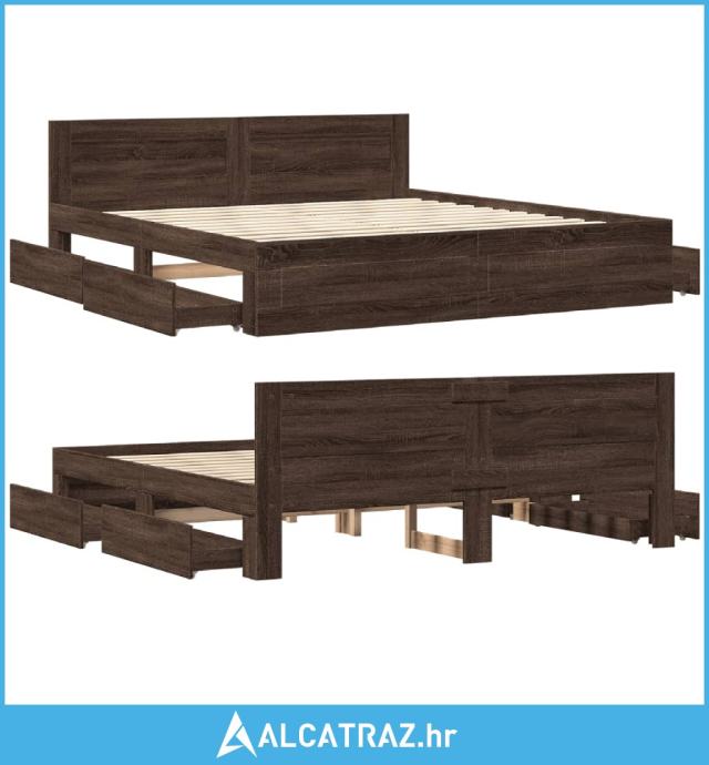 Okvir za krevet s uzglavljem smeđa boja hrasta 200x200cm drveni - NOVO