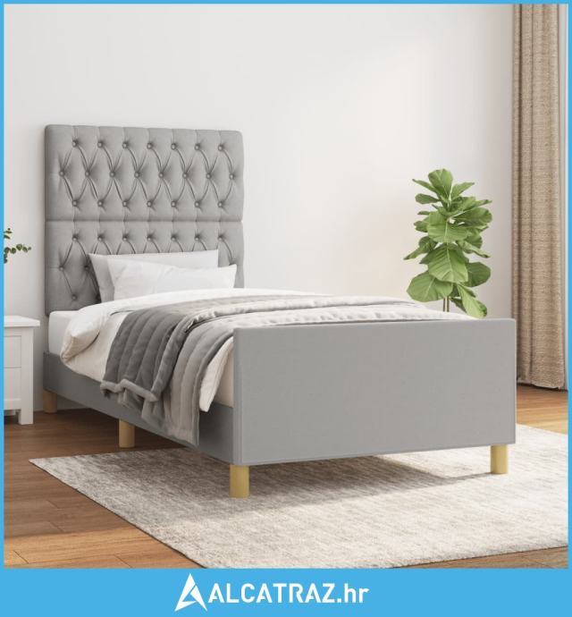 Okvir za krevet s uzglavljem svjetlosivi 100x200 cm od tkanine - NOVO