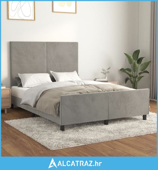 Okvir za krevet s uzglavljem svjetlosivi 140x190 cm baršunasti - NOVO
