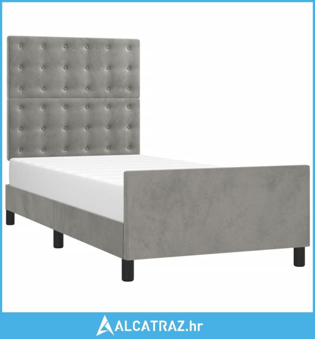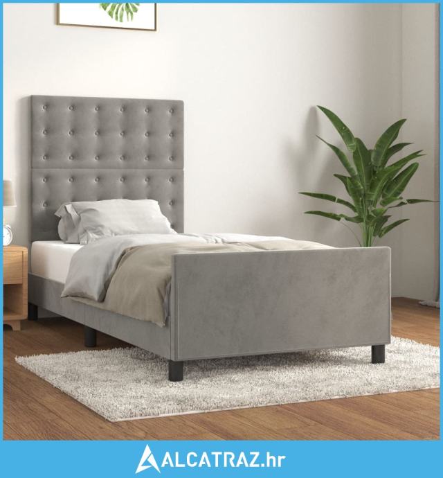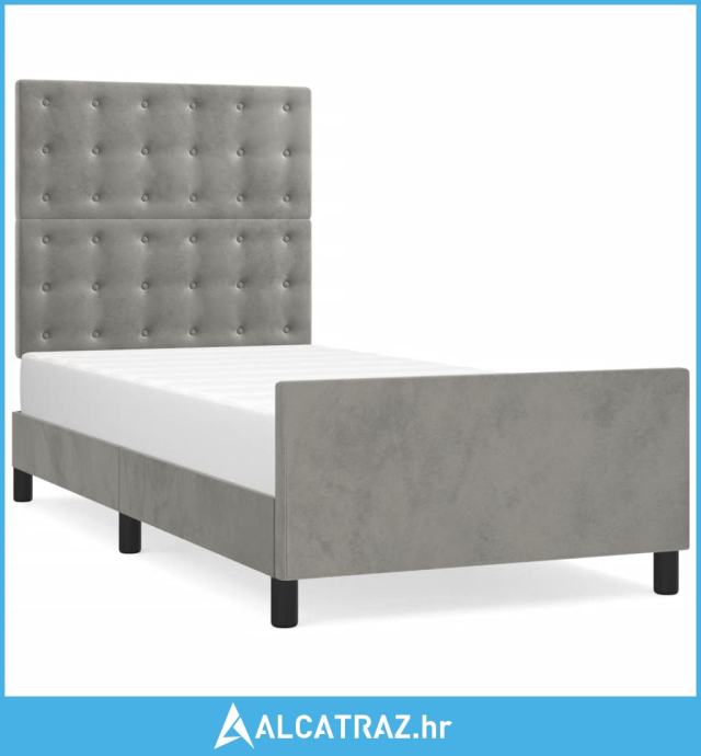 Okvir za krevet s uzglavljem svjetlosivi 90x200 cm baršunasti - NOVO