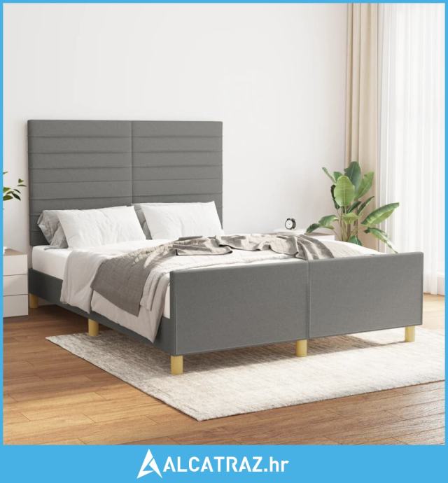 Okvir za krevet s uzglavljem tamnosivi 140x190 cm od tkanine - NOVO