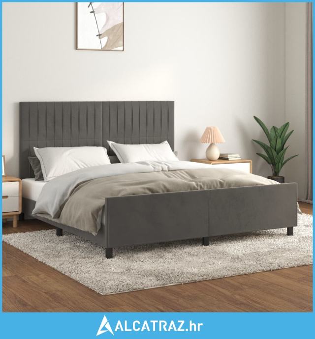 Okvir za krevet s uzglavljem tamnosivi 160x200 cm baršunasti - NOVO