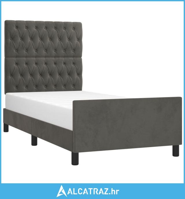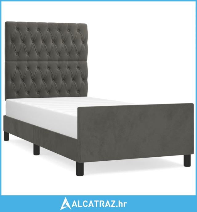 Okvir za krevet s uzglavljem tamnosivi 90x200 cm baršunasti - NOVO