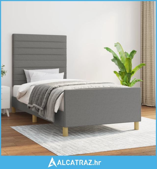 Okvir za krevet s uzglavljem tamnosivi 90x200 cm od tkanine - NOVO