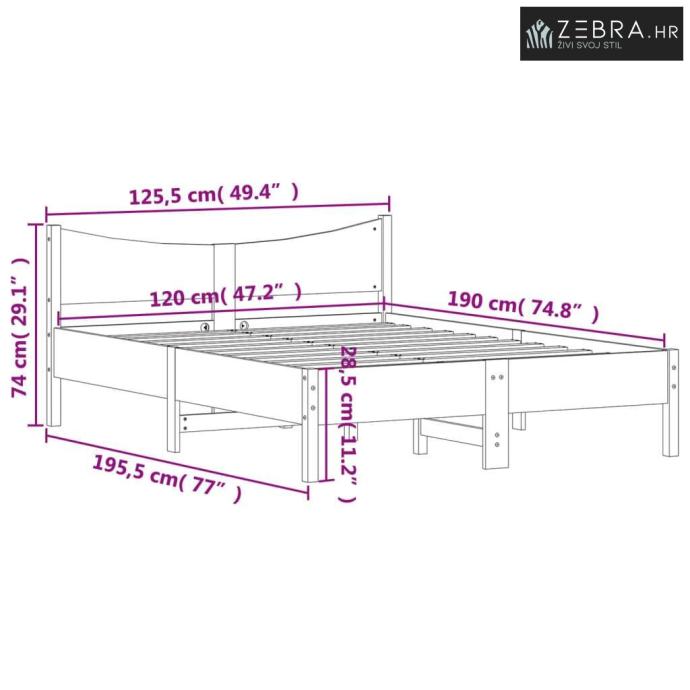 Prikladna veličina madraca (madrac nije uključen): 120 x 190 cm (Š x D)