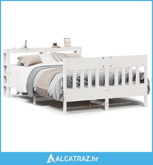 Okvir kreveta bez madraca bijeli 140x200 cm od masivne borovine - NOVO