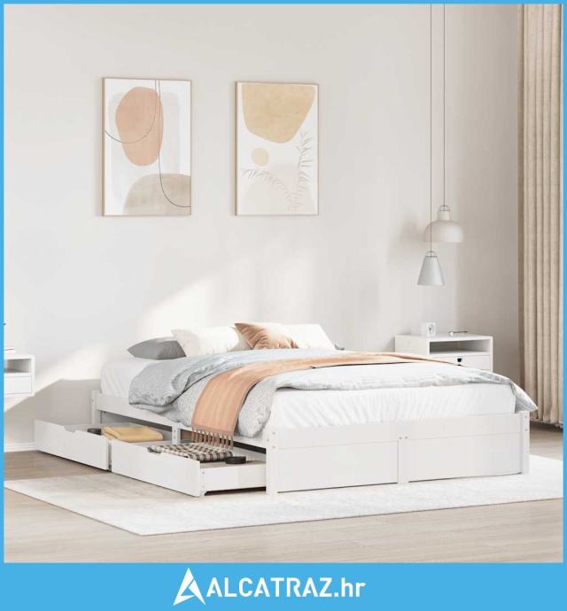 Okvir kreveta bez madraca bijeli 140x200 cm od masivne borovine - NOVO