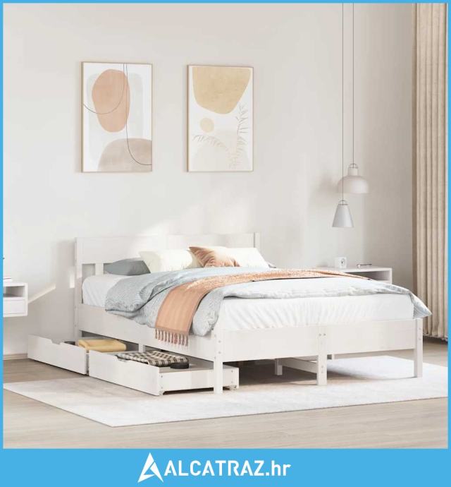 Okvir kreveta bez madraca bijeli 140x200 cm od masivne borovine - NOVO