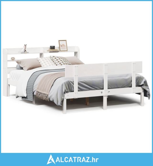 Okvir kreveta bez madraca bijeli 150x200 cm od masivne borovine - NOVO