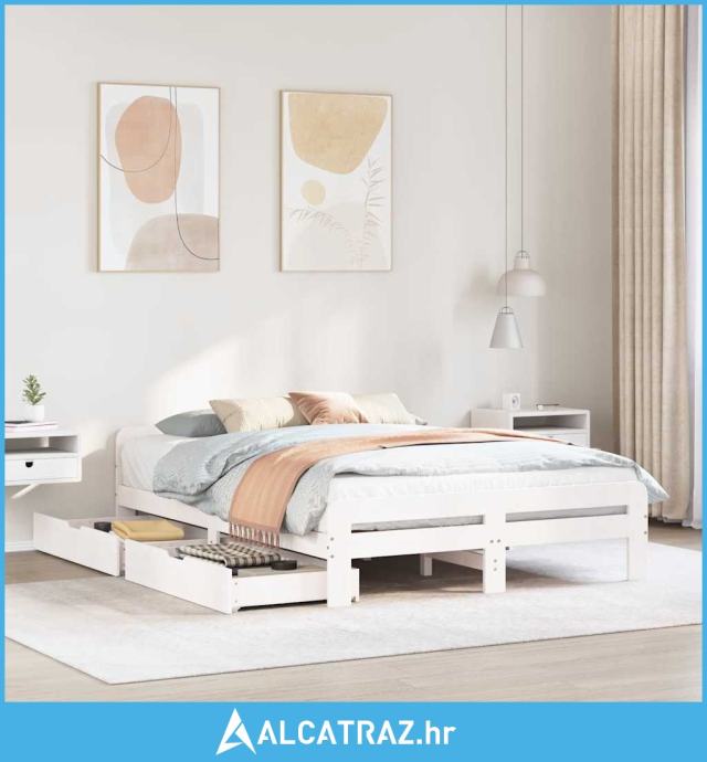 Okvir kreveta bez madraca bijeli 150x200 cm od masivne borovine - NOVO