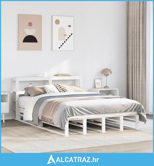 Okvir kreveta bez madraca bijeli 160x200 cm od masivne borovine - NOVO