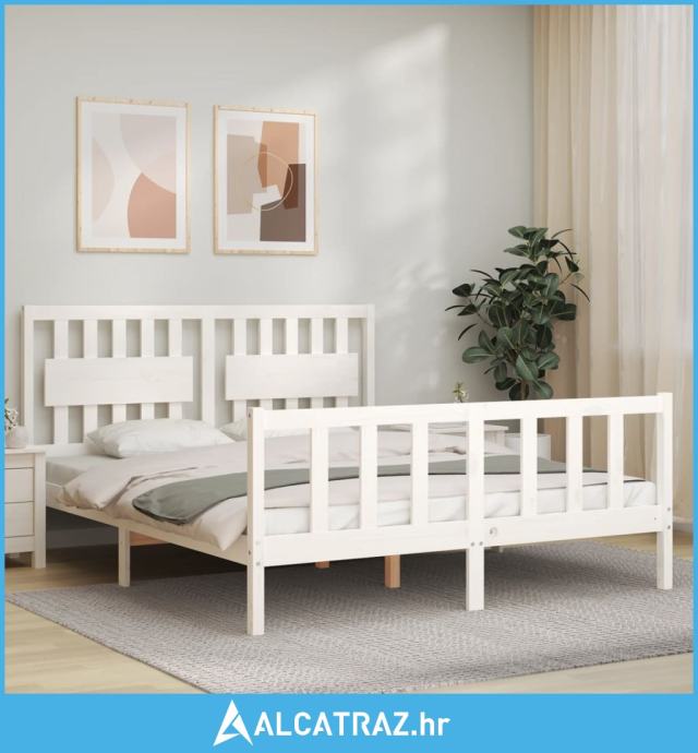 Okvir kreveta bez madraca bijeli 160x200 cm od masivne borovine - NOVO
