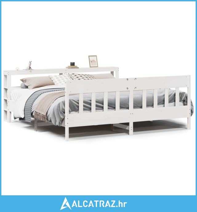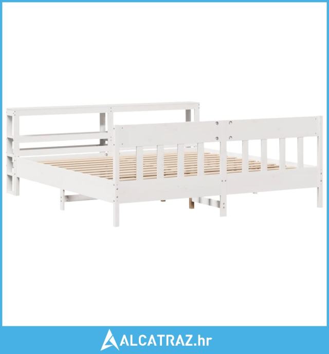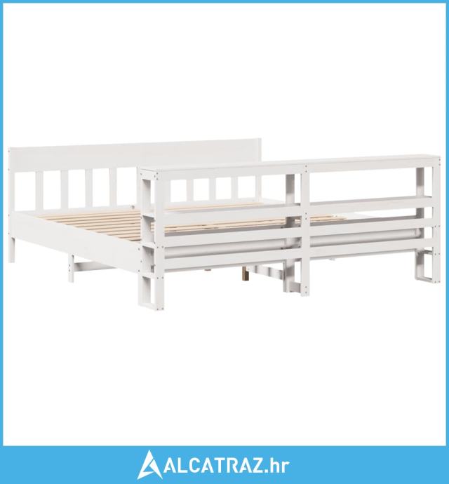Okvir kreveta bez madraca bijeli 200x200 cm od masivne borovine - NOVO