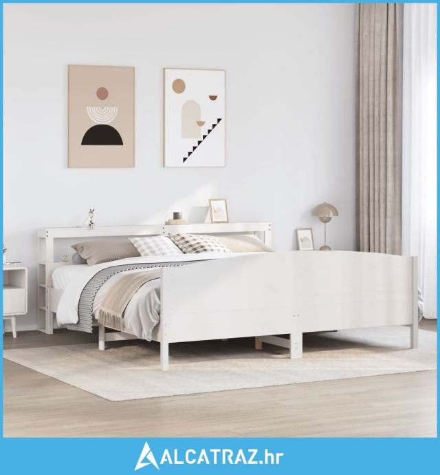 Okvir kreveta bez madraca bijeli 200x200 cm od masivne borovine - NOVO