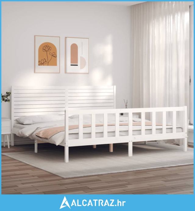 Okvir kreveta bez madraca bijeli 200x200 cm od masivne borovine - NOVO