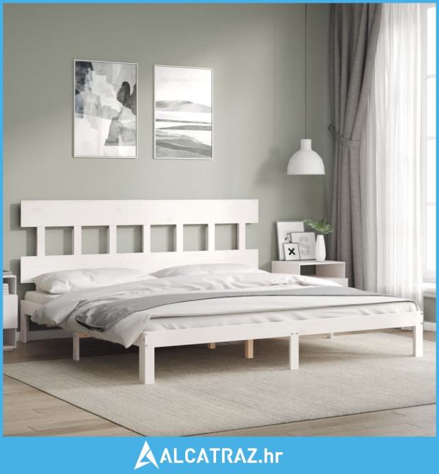 Okvir kreveta bez madraca bijeli 200x200 cm od masivne borovine - NOVO