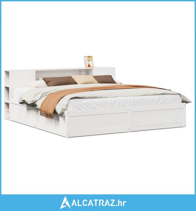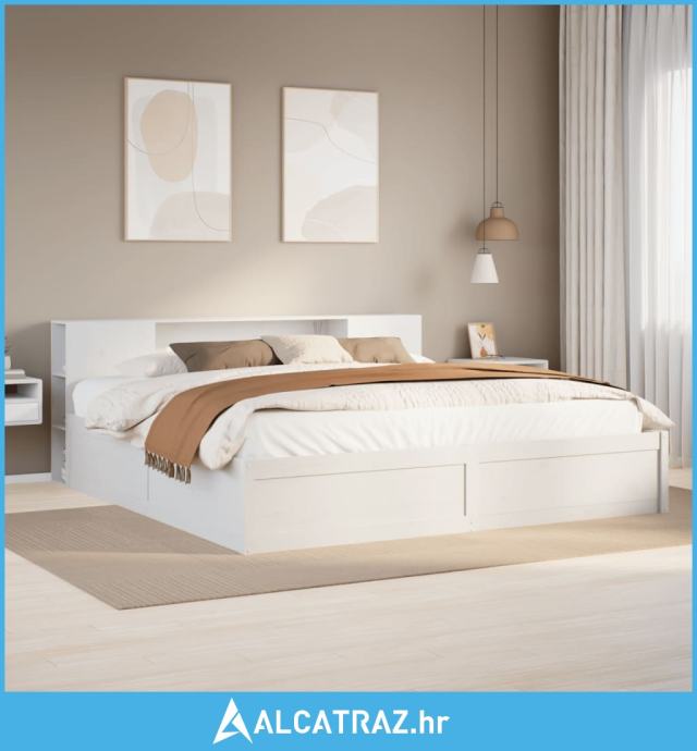 Okvir kreveta bez madraca bijeli 200x200 cm od masivne borovine - NOVO