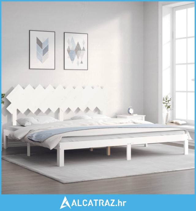 Okvir kreveta bez madraca bijeli 200x200 cm od masivne borovine - NOVO