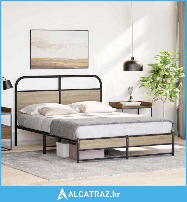Okvir kreveta bez madraca dimljena boja hrasta 150x200cm drveni - NOVO