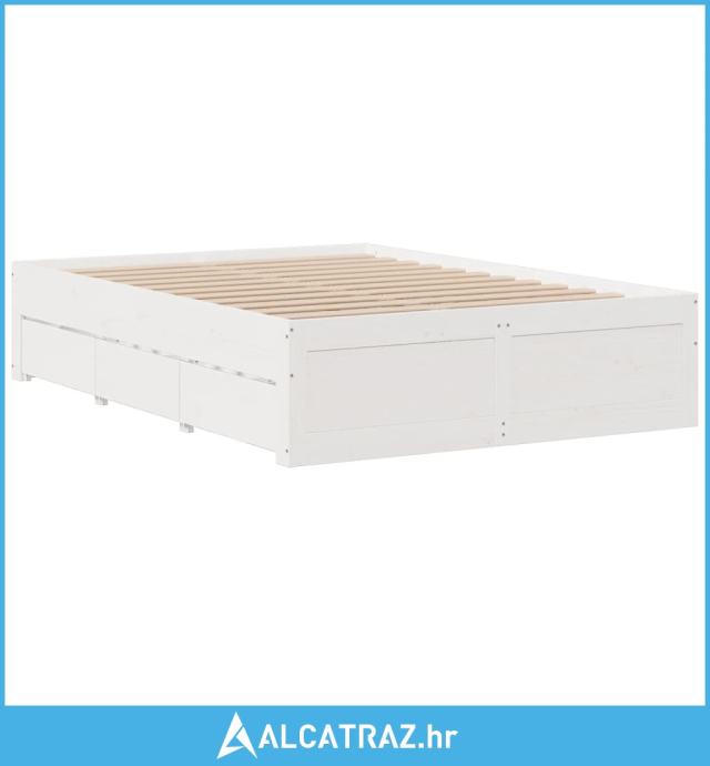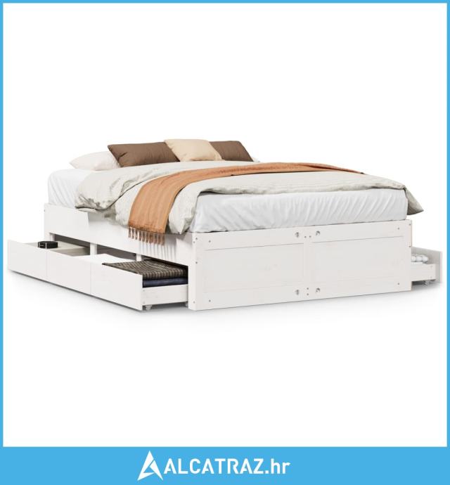 Okvir kreveta bez madraca s ladicama bijeli 150x200 cm borovina - NOVO
