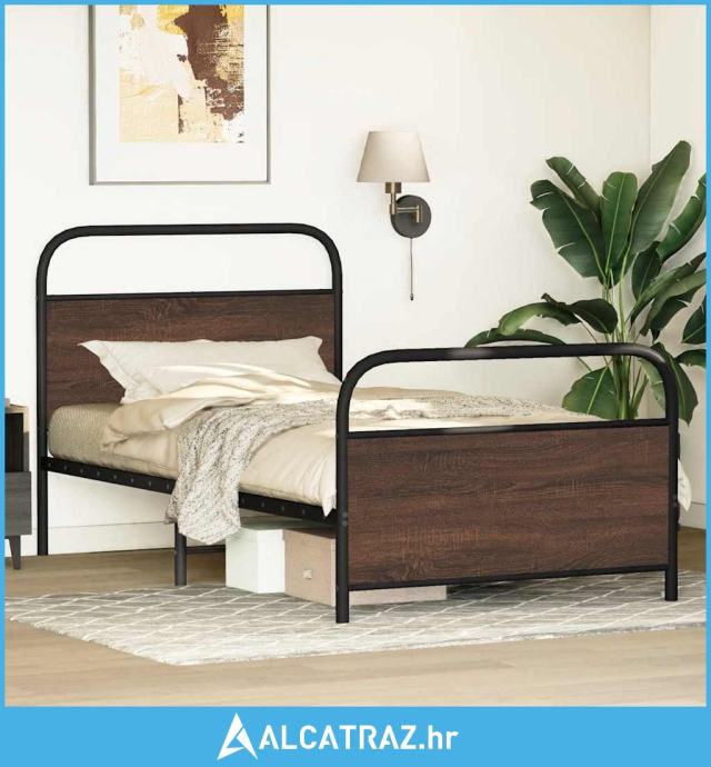 Okvir kreveta bez madraca smeđa boja hrasta 107x203 cm drveni - NOVO